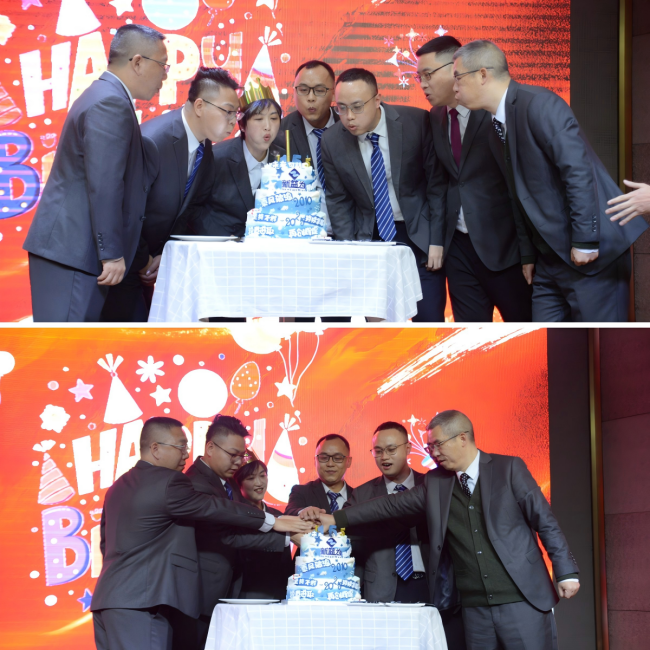 18 點(diǎn) 08 分,年會(huì)在萬眾期待中盛大開場(chǎng),表彰環(huán)節(jié)率先點(diǎn)亮激情,2024 年度杰出員工、卓越團(tuán)隊(duì)榮耀登臺(tái),接受公司上下尊崇褒獎(jiǎng),會(huì)場(chǎng)掌聲雷動(dòng),氣氛熱烈。18 點(diǎn) 45 分,三層生日蛋糕承載公司 15 載奮進(jìn)榮光緩緩?fù)粕衔枧_(tái),近2 月生日員工與公司同慶生辰,溫馨畫面感人至深。18 點(diǎn) 50 分,項(xiàng)目總監(jiān)攜全體項(xiàng)目經(jīng)理、部門負(fù)責(zé)人向嘉賓舉杯祝酒,宣告晚宴開啟,員工才藝秀與多輪抽獎(jiǎng)輪番登場(chǎng),歡聲笑語不斷,幸運(yùn)之花頻綻。